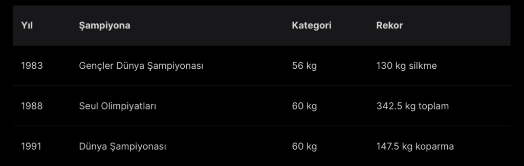 Naim Süleymanoğlu, spor kariyeri boyunca çok sayıda başarıya ve rekora imza atmıştır. Hem Olimpiyatlar’da hem de dünya şampiyonalarında büyük başarılara ulaşmıştır.